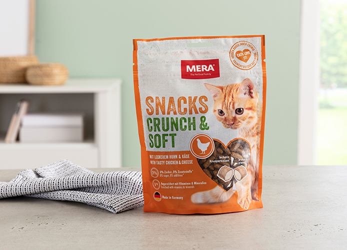 Unsere Crunch & Soft Snacks werden deine Katze begeistern und gleichzeitig kannst du darauf vertrauen, dass du ihr etwas Gutes tust.