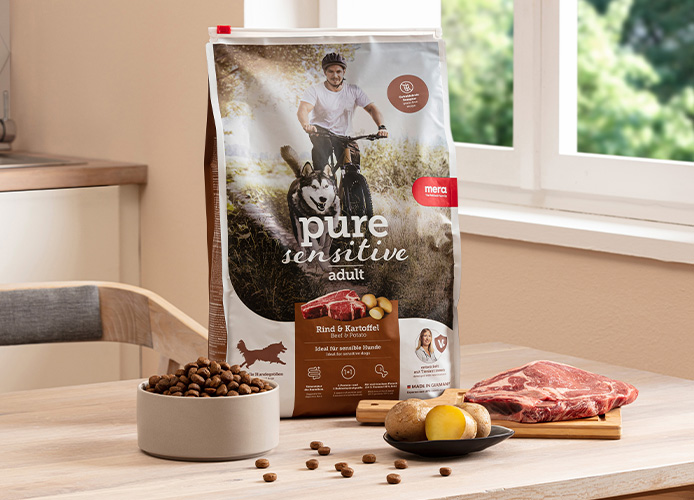 Natürlich gut verträglich für deinen sensiblen Freund: Mit mera pure sensitive bietest Du Deinem Hund ein ganzheitliches Ernährungskonzept mit der Reduktion auf das Wesentliche. Statt exotischer Zutaten verwenden wir für unsere pure sensitive Produkte überwiegend regionale Rohstoffe.