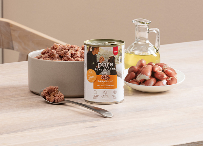 pure sensitive Geflügelherzen Nassfutter – die Lösung für ein unbeschwertes Hundeleben! Speziell für Hunde mit normaler Aktivität entwickelt und nach dem LID-Prinzip konzipiert, setzt es auf Qualität und Verträglichkeit. Wenn dein vierbeiniger Freund empfindlich reagiert, kann pure sensitive eine passende Wahl sein. Mit nur wenigen, aber hochwertigen Zutaten sorgt pure sensitive für eine erstklassige Verträglichkeit.