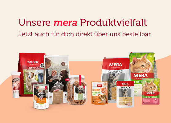 Die ganze Vielfalt der mera Katzen- und Hundefutter Produkte erhalten Fachhändler jetzt direkt im mera-Onlineshop. Mit der gewohnt hochwertigen Produktqualität versorgt mera Hunde und Katzen in jeder Lebensphase, vom Welpen oder Kitten bis zum Senior, mit hochwertigem Hunde- und Katzenfutter.