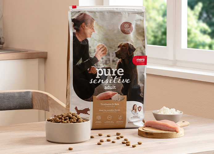 Natürlich gut verträglich für deinen sensiblen Freund: Mit mera pure sensitive bietest Du Deinem Hund ein ganzheitliches Ernährungskonzept mit der Reduktion auf das Wesentliche. Statt exotischer Zutaten verwenden wir für unsere pure sensitive Produkte überwiegend regionale Rohstoffe.