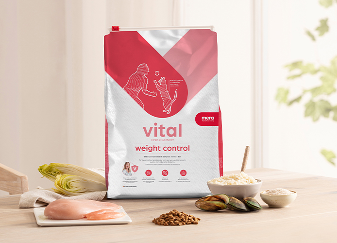 vital von mera ist eine hochwertige Produktlinie, die eine ausgewogene und nährstoffreiche Ernährung für Hunde jeden Alters und jeder Rasse bietet. Mit dieser Marke möchten wir die Behandlung spezifischer Krankheiten und deren Symptome unterstützen. In Zusammenarbeit mit Tierärzten haben wir unsere Erfahrung und unser Wissen über die Bedürfnisse von Hunden in die Entwicklung der speziellen vital-Rezepturen einfließen lassen.